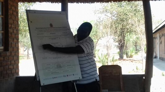 This Southern African country has an agricultural governance system consisting of many layers of organizational structures between the national and the village levels. This can result in collaboration inefficiencies if not carefully coordinated. In a joint initiative by INGENAES (Integrating Gender and Nutrition within Agricultural Extension Services)  and the Malawi-based SANE (Strengthening Agricultural and Nutrition Extension) sister project – both being implemented by the University of Illinois –  a pilot was started to use participatory collaboration mapping to strengthen the District Agriculture Extension Services System (DAESS). This is the country’s decentralised extension framework for enabling agricultural stakeholders to enhance coordination and collaboration. Our aim was to engage in a participatory process of identifying and organising agricultural issues for collective action within and across the governance levels.