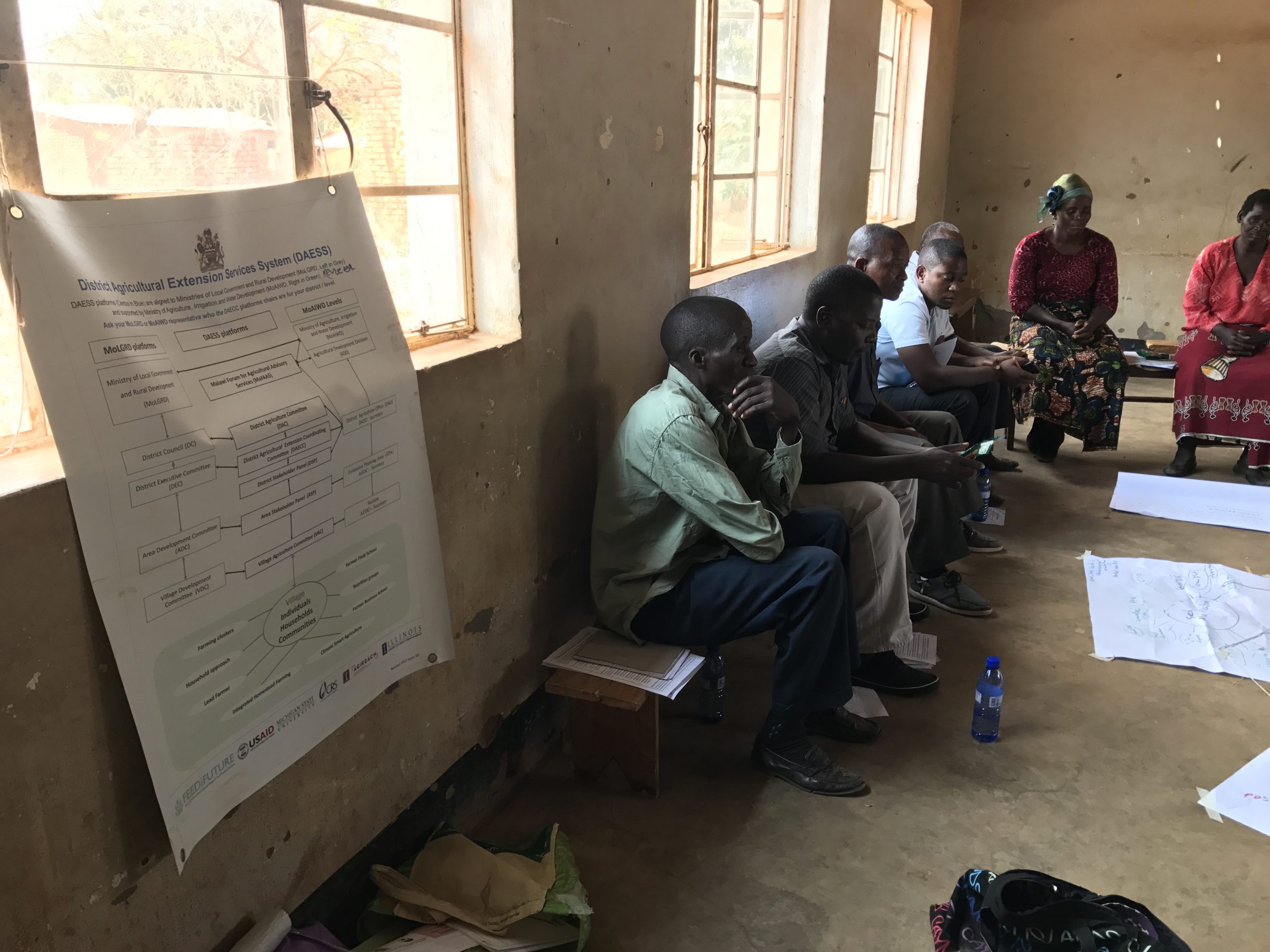 This Southern African country has an agricultural governance system consisting of many layers of organizational structures between the national and the village levels. This can result in collaboration inefficiencies if not carefully coordinated. In a joint initiative by INGENAES (Integrating Gender and Nutrition within Agricultural Extension Services)  and the Malawi-based SANE (Strengthening Agricultural and Nutrition Extension) sister project – both being implemented by the University of Illinois –  a pilot was started to use participatory collaboration mapping to strengthen the District Agriculture Extension Services System (DAESS). This is the country’s decentralised extension framework for enabling agricultural stakeholders to enhance coordination and collaboration. Our aim was to engage in a participatory process of identifying and organising agricultural issues for collective action within and across the governance levels.